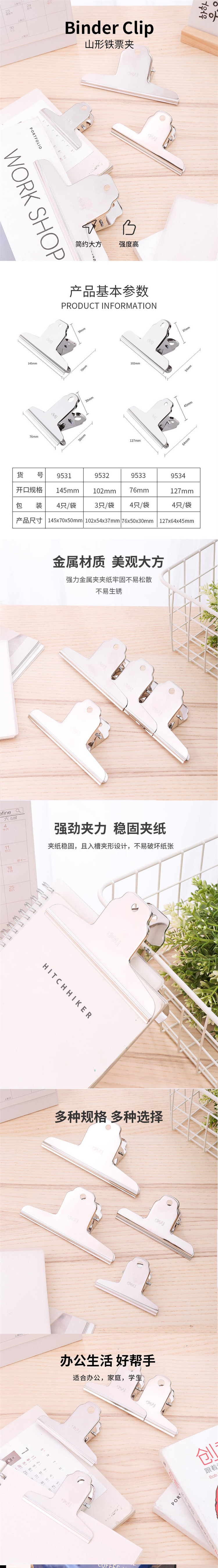 商品标题:得力 9534 山形铁票夹铁夹 127mm 4个/袋 (单位:袋) 银色