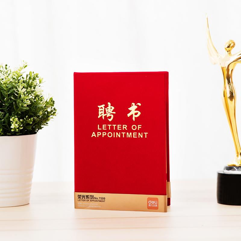 商品标题:得力 7599 聘书 12k/OPP袋装 (单位:本) 红色