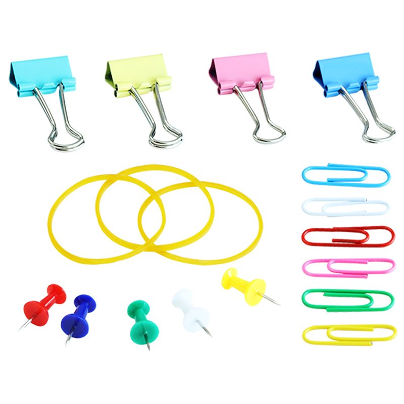 商品标题:得力(deli) 8500 19mm小号票夹*10只+29mm回形针*100只+工字钉50只+橡皮筋/盒 办公组合套装 (计价单位:盒)