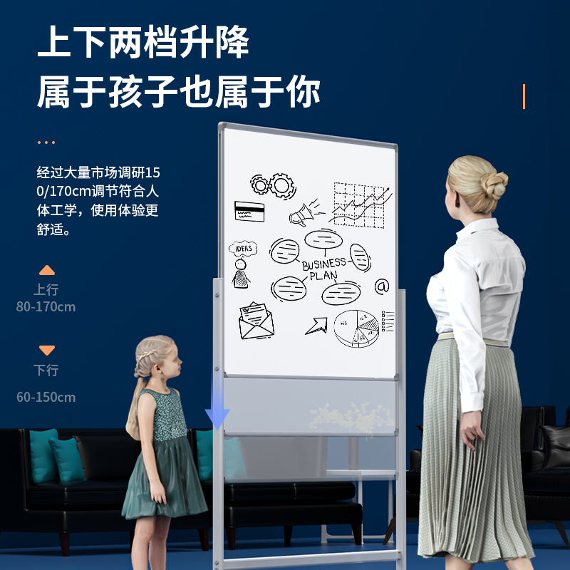 商品标题:得力MB711_H型可升降双面白板1200*900mm(白色)(块)