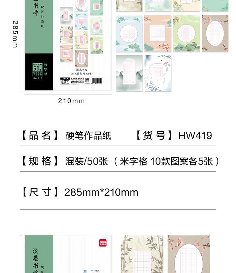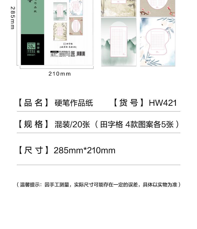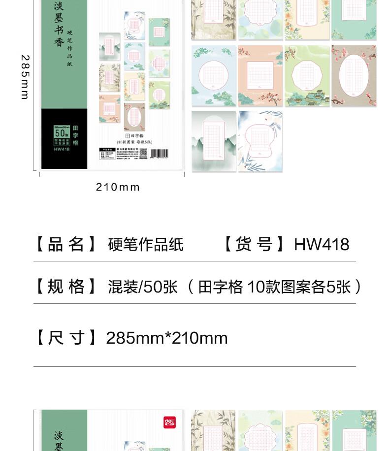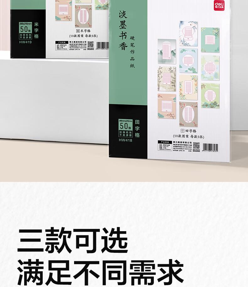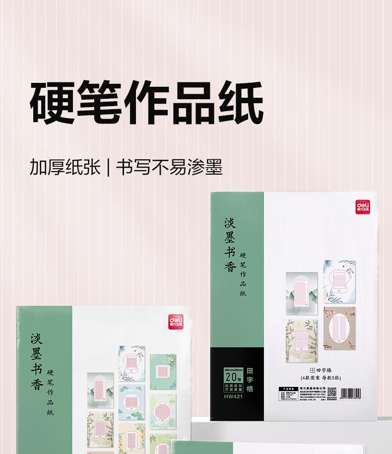 商品标题:得力HW421硬笔作品纸田字格(混)(20张/袋)