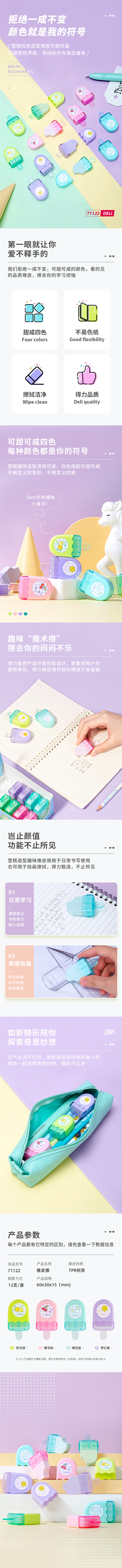 商品标题:得力71122橡皮擦60*30*15mm(混)(单位:块)