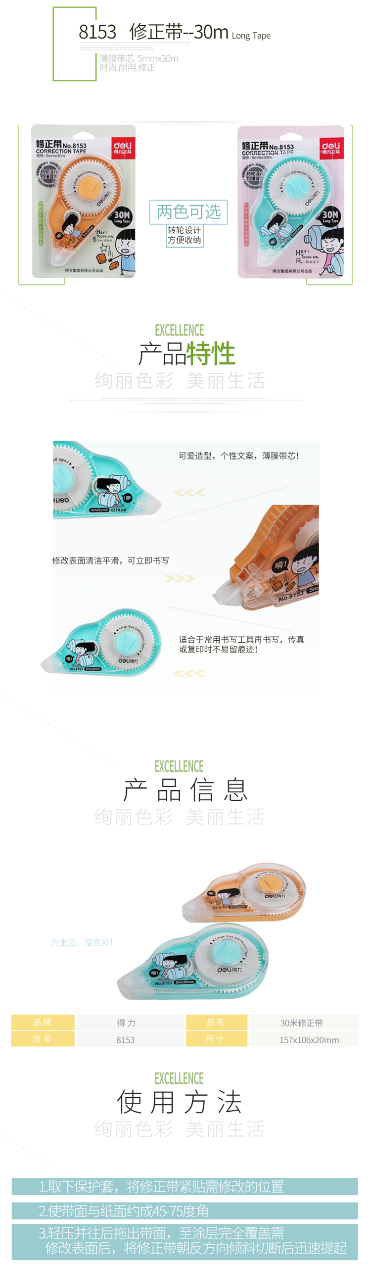 品牌:得力(DELI) 型号:8153 商品标题:得力8153修正带 修正用品(混) 销售单位:卡