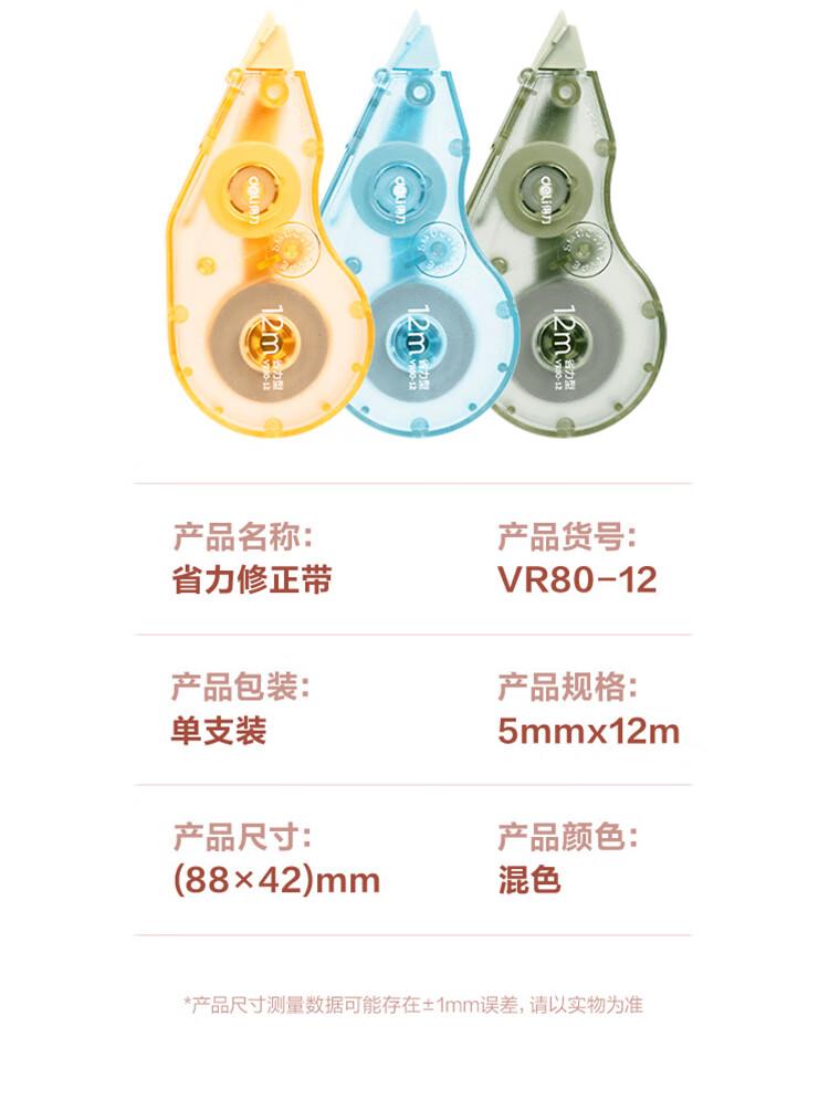 商品标题:得力VR80-12省力型修正带_5mm*12m(混)(个)