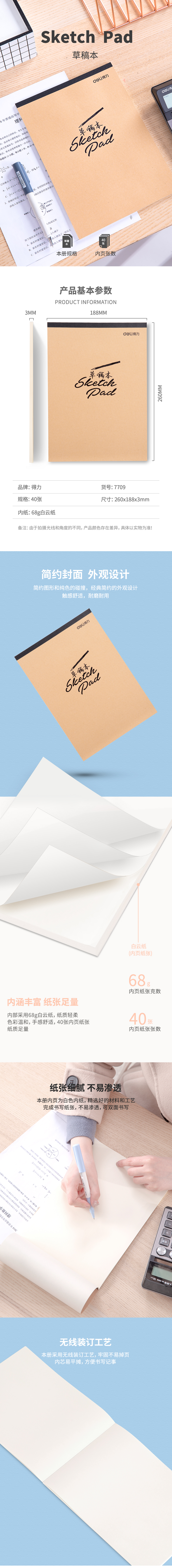 得力(DELI)7709无线装订本-草稿本 40张(混)(单位:本)