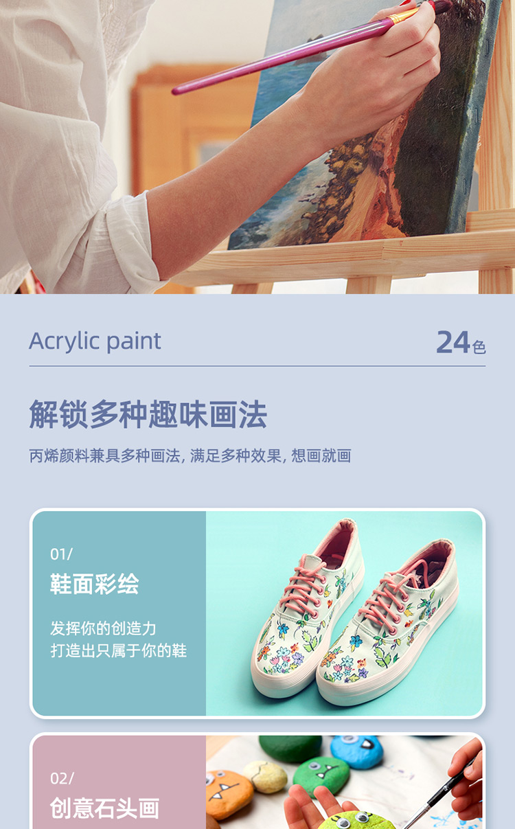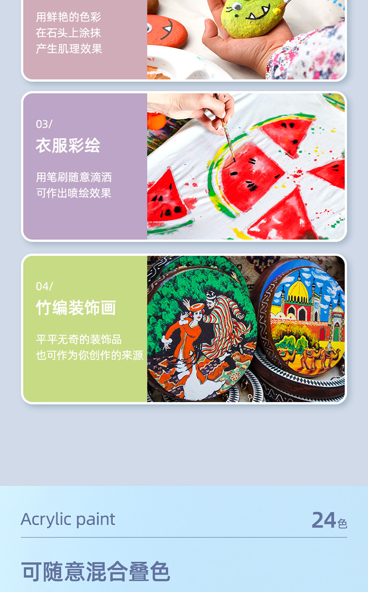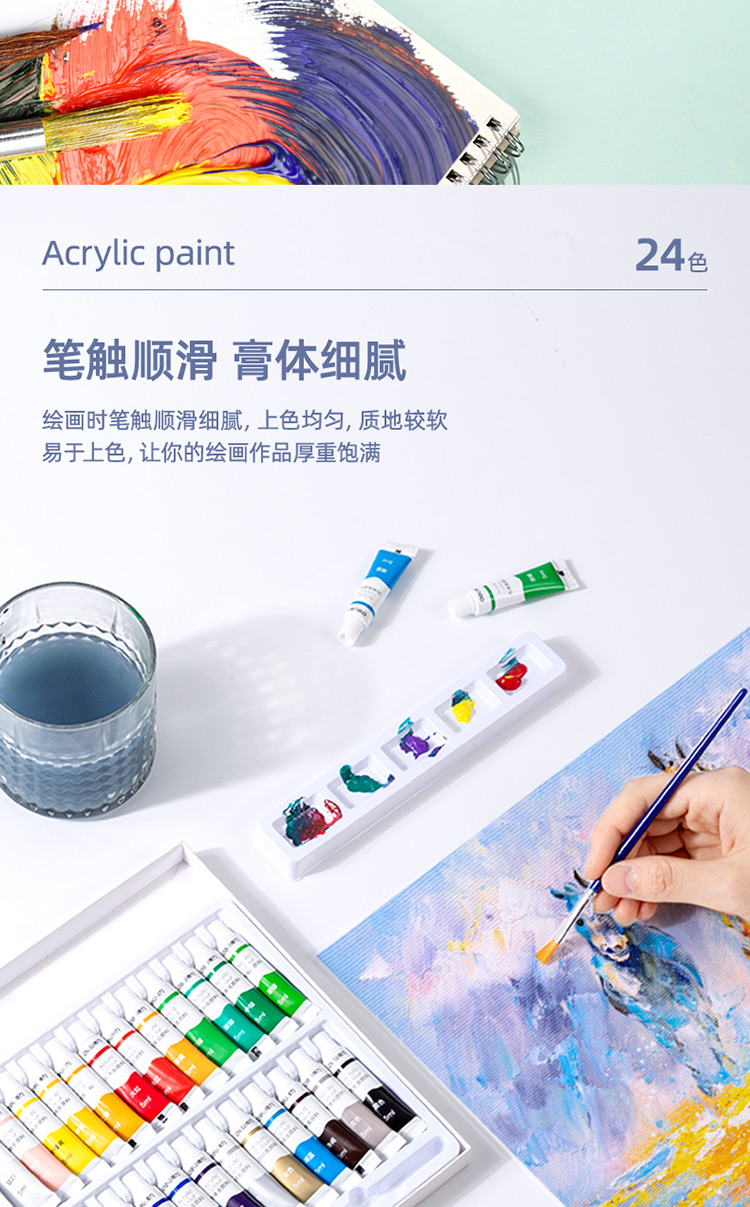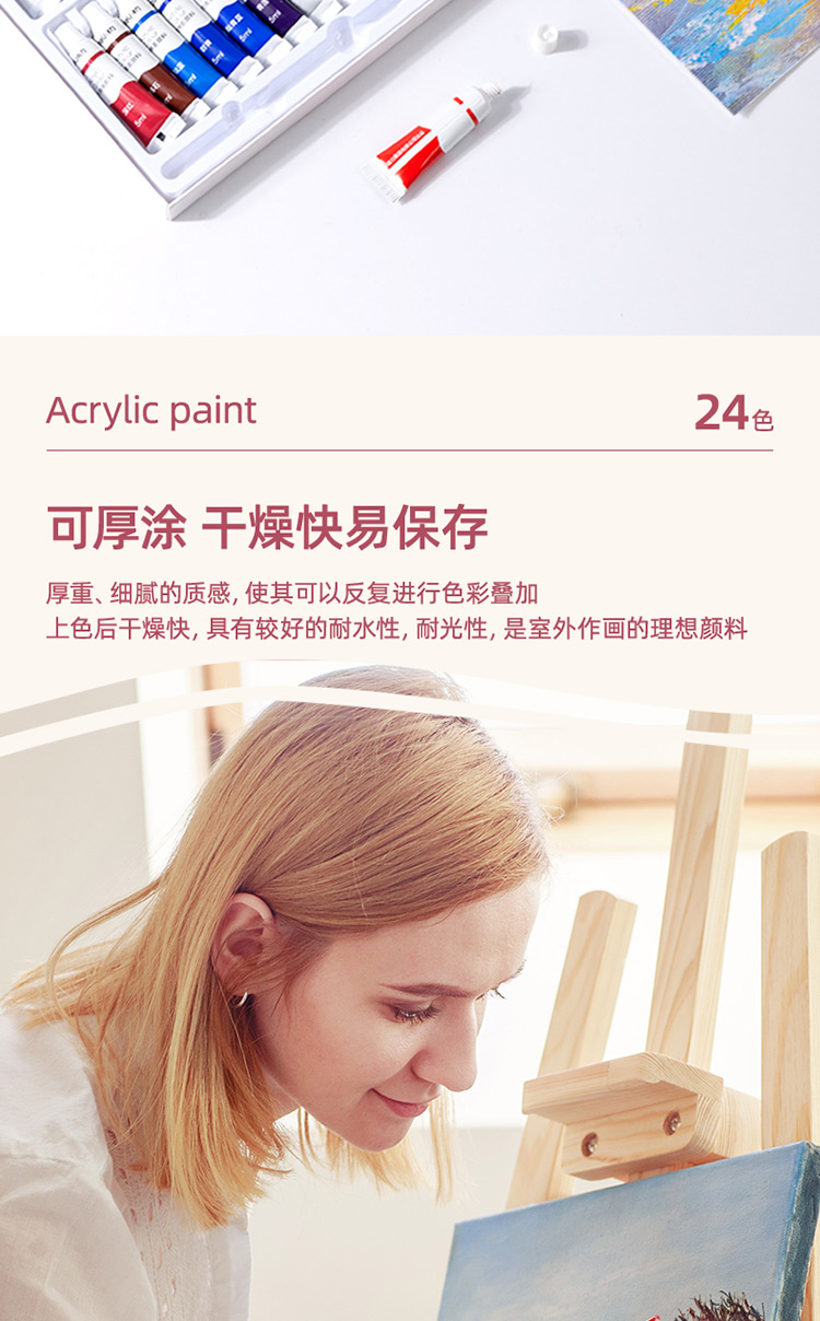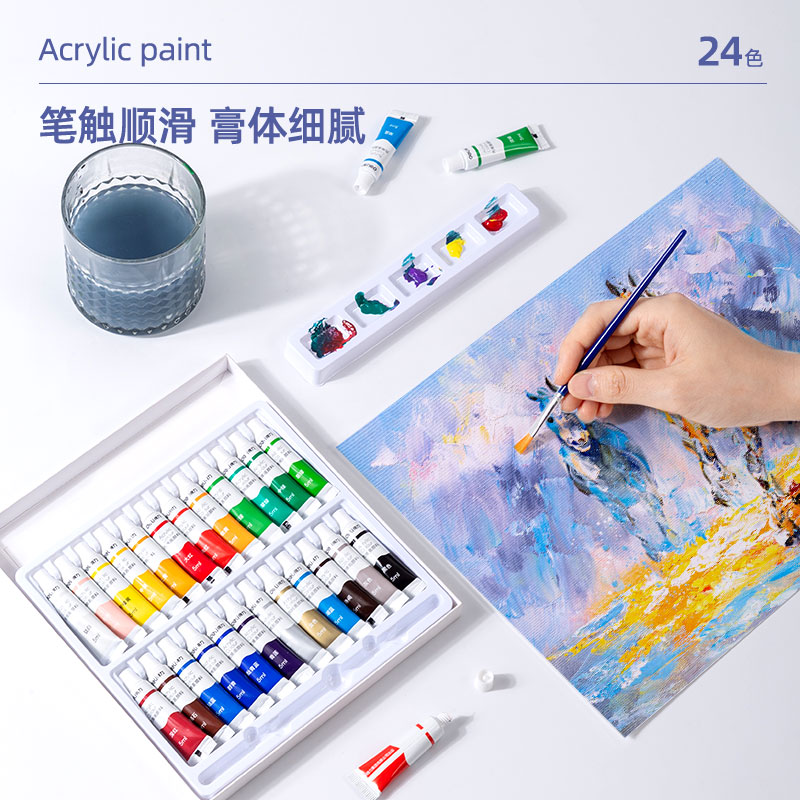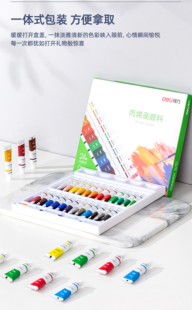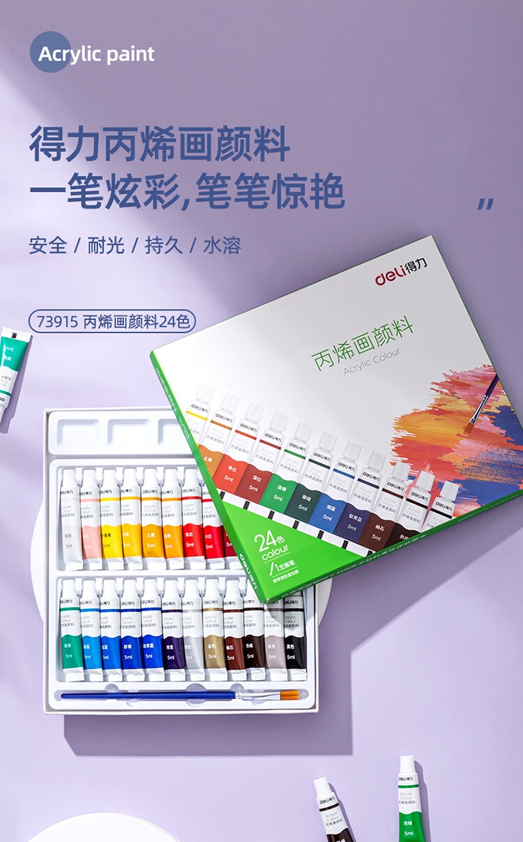 商品标题:得力73915_24色5ml丙烯颜料(混)(盒)