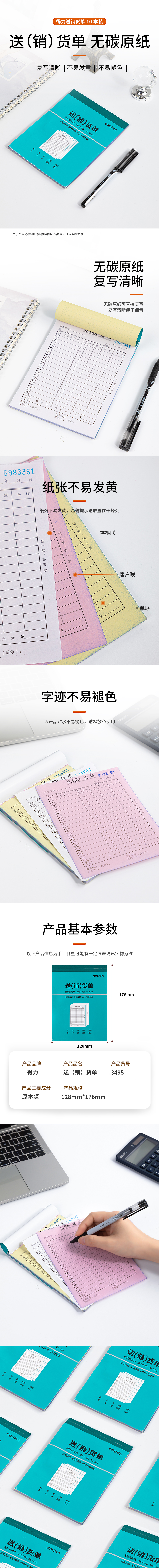 得力3495三联销货清单176*128mm (单位:本)蓝