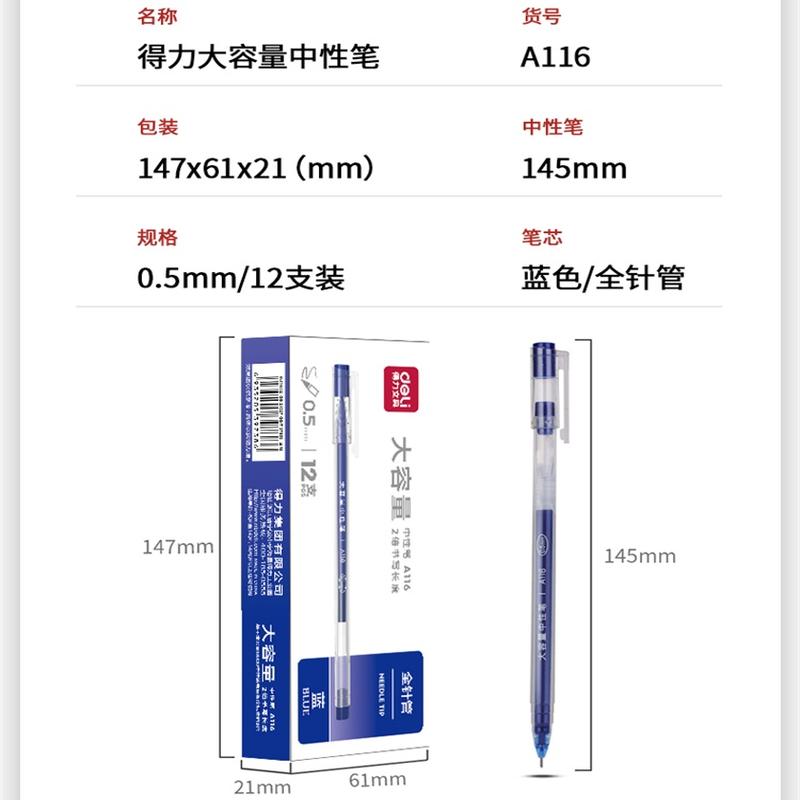 得力(deli)A116大容量中性笔0.5mm全针管(蓝)(单位:支)