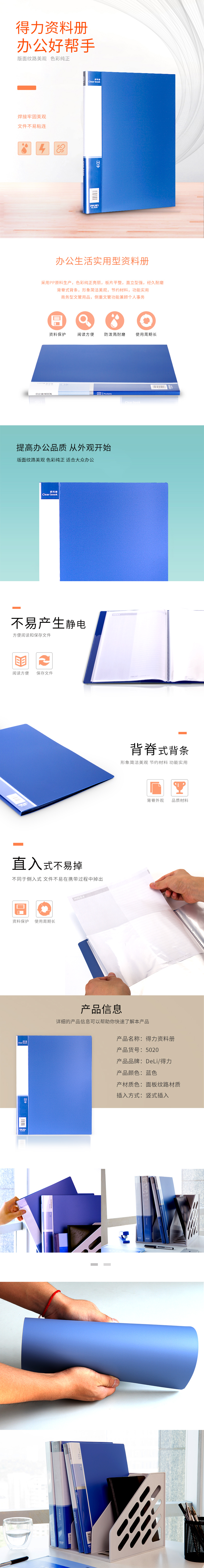 商品标题:得力 5020 资料册 (单位:本) 蓝色