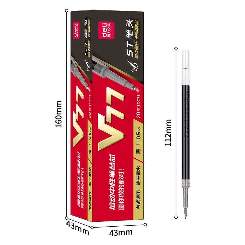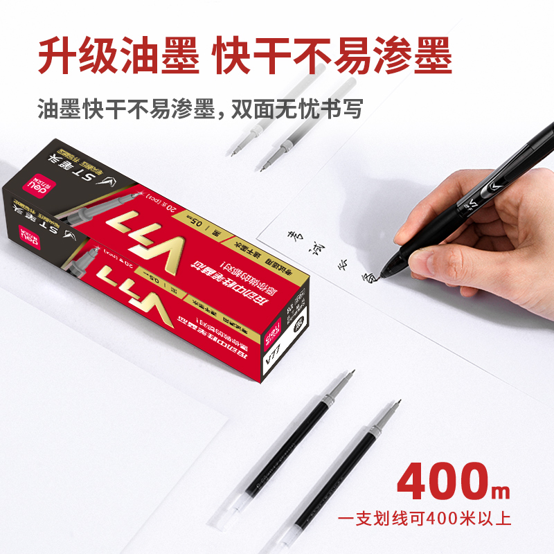 得力V77连中三元速干中性笔替芯0.5MM按动ST头(黑)(支)