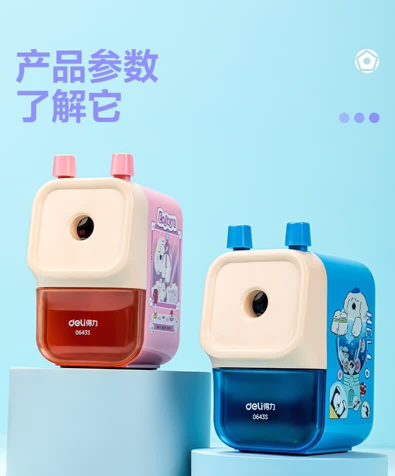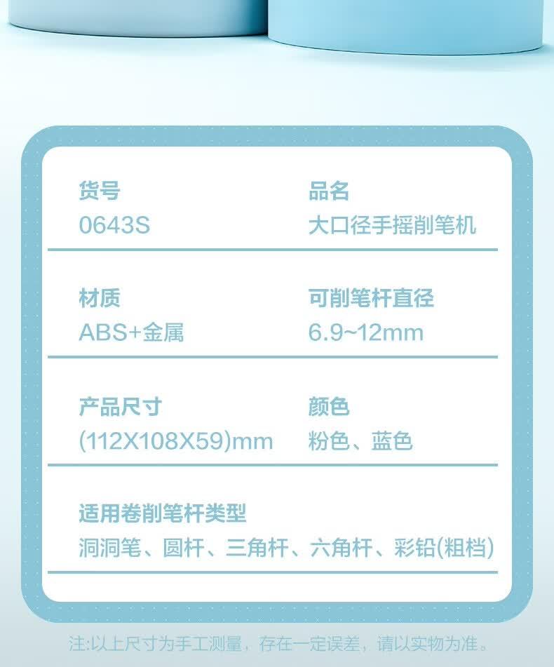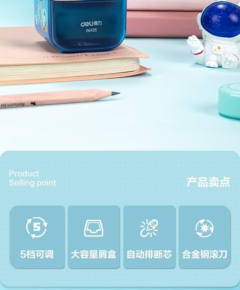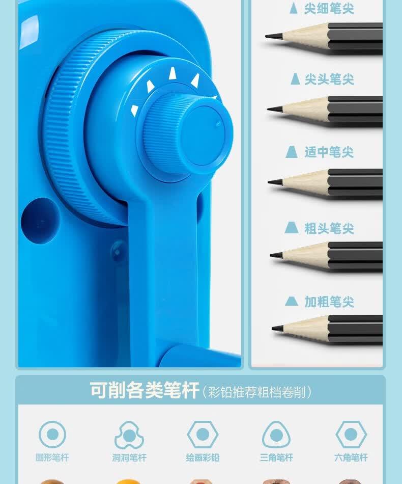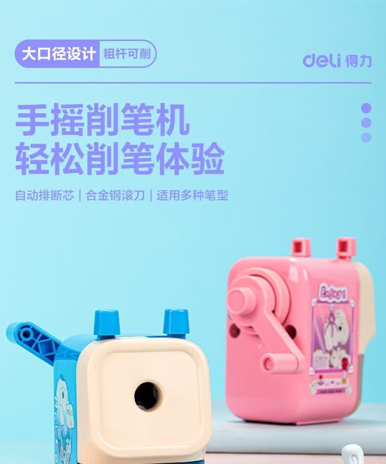 商品标题:得力0643S大口径手摇削笔机(蓝色)(盒)