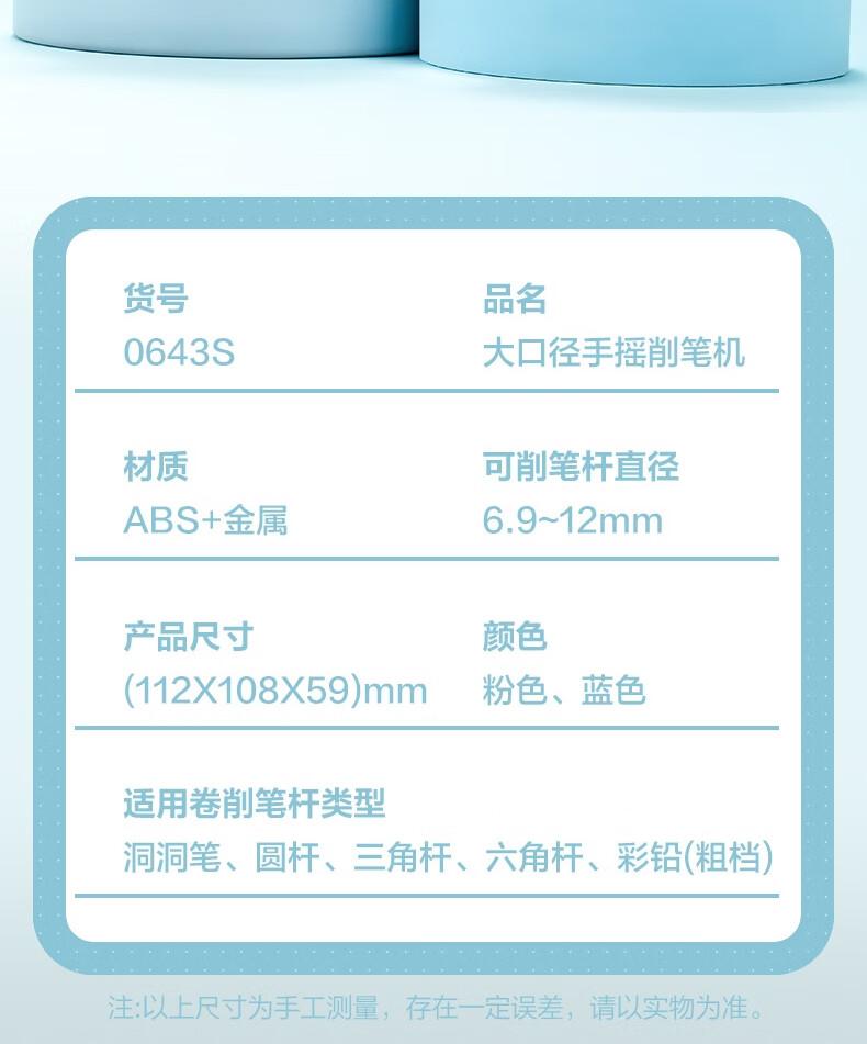 商品标题:得力0643S大口径手摇削笔机(粉色)(盒)
