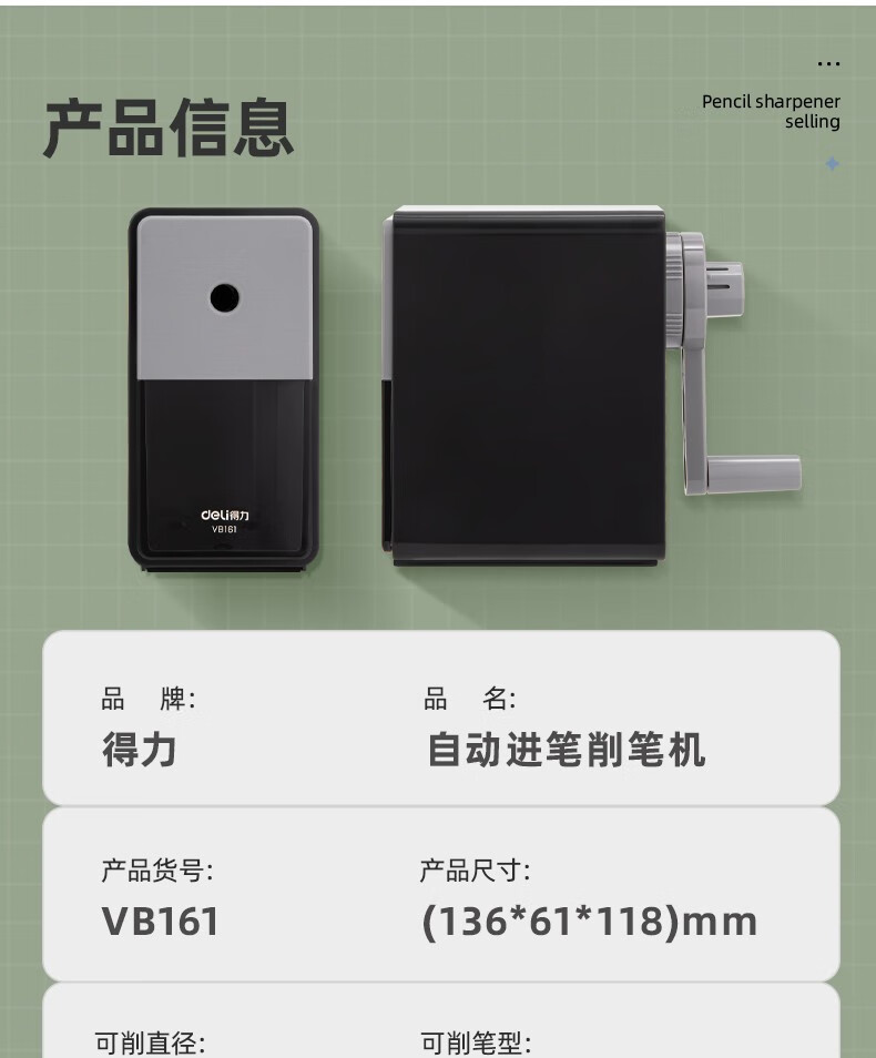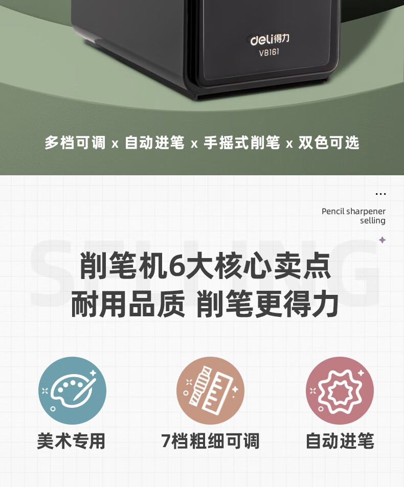 商品标题:得力VB161美术削笔机(黑色)(盒)