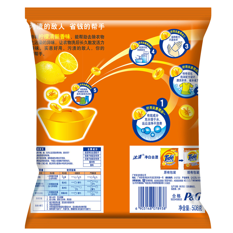 汰渍净白去渍升级洗衣粉508克(袋)新老包装随机