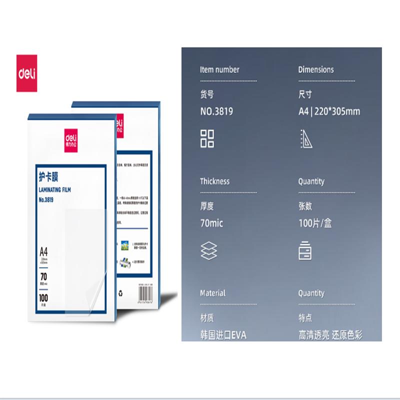得力 3819 塑封膜100片/包 220*305mm A4 70mic(单位:包)透明