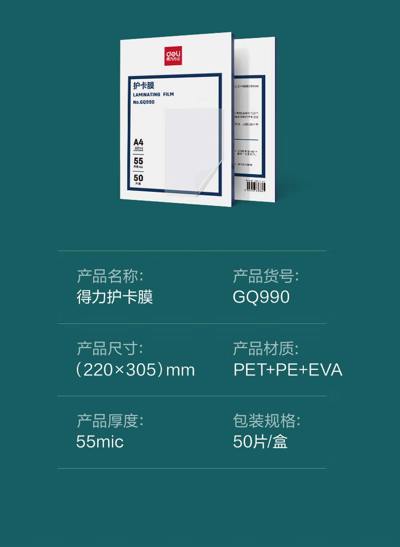 得力(DELI)GQ990塑封膜(透明)(单位:盒)
