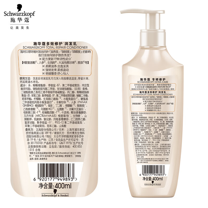 施华蔻(Schwarzkopf)多效修护润发乳400ml(瓶)