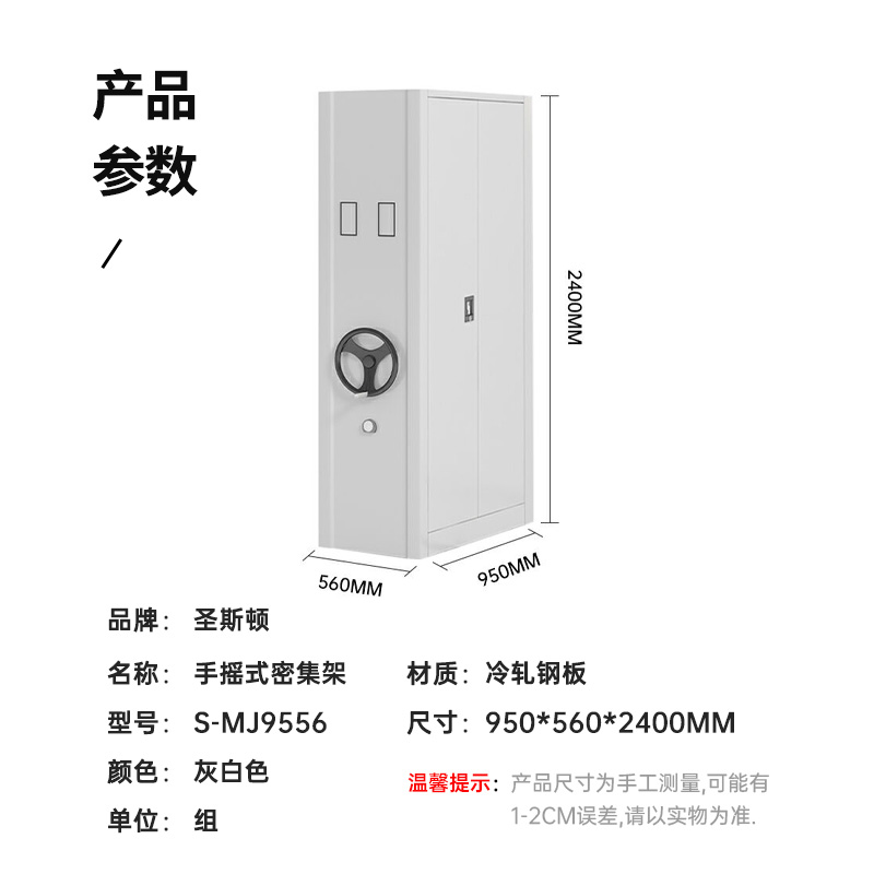 圣斯顿S-MJ9556钢制密集架档案柜手摇式950*560*2400mm(组)灰白色
