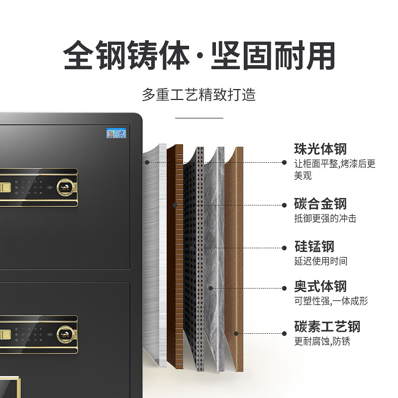 虎牌办公小型双门指纹密码保险箱 博瑞系列 80cm 黑色(单位:台)