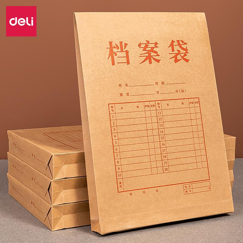 得力PP402-10纯浆牛皮纸档案袋(250g-4cm)(黄)(10个/包)(单位:包)