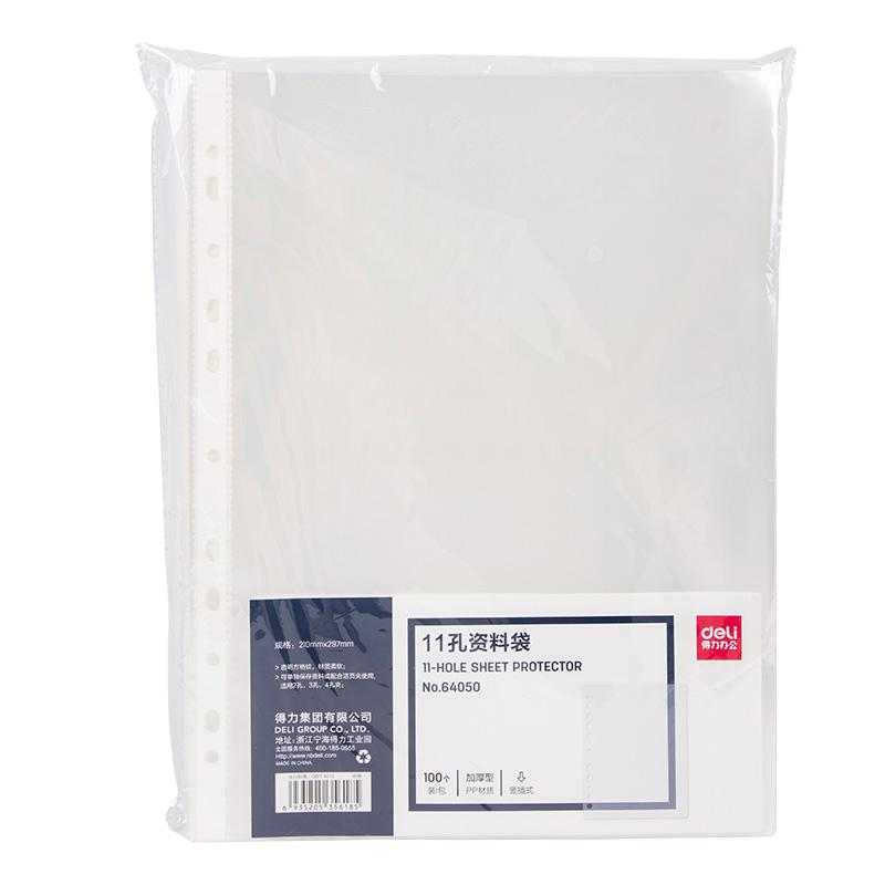 得力64050_11孔资料袋(透明)(100个/包)(单位:包)