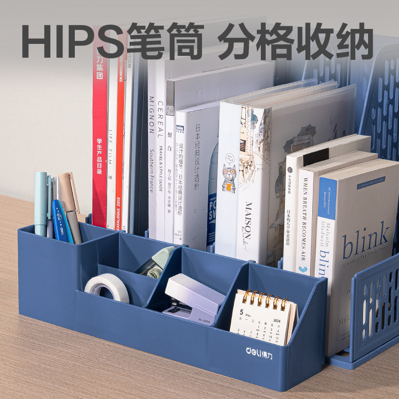 得力四联文件框带笔筒DP532(蓝色)(袋)