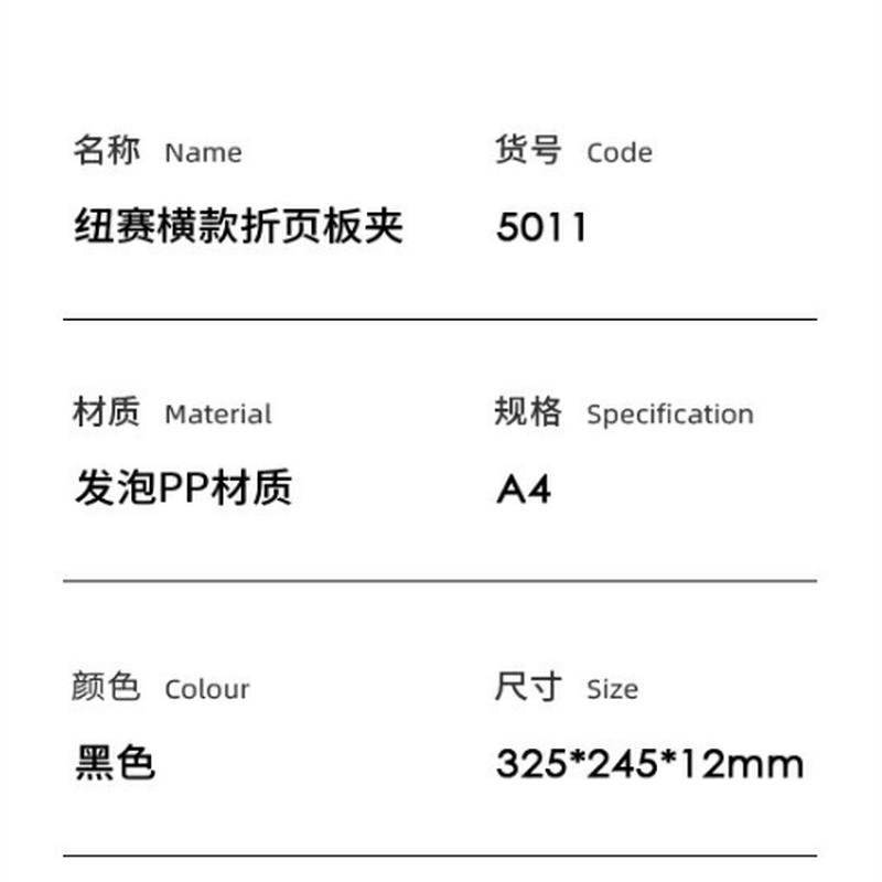 得力5011横式折页板夹A4 325*245*12mm(黑)(单位:个)
