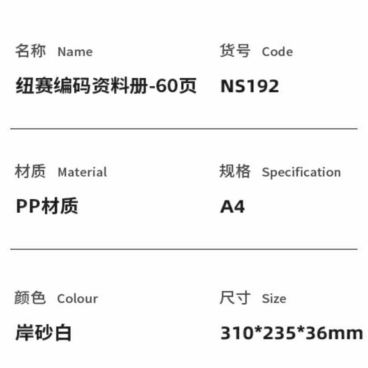 得力NS192纽赛60页编码资料册(岸砂白)(个)