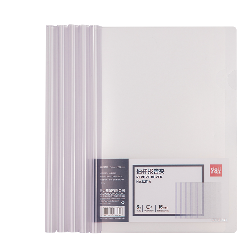 得力63108-抽杆报告夹(透明)(10个/包)(包)