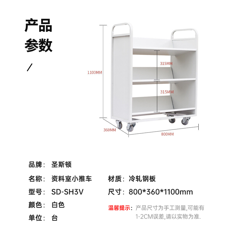 圣斯顿SD-SH3V书车图书馆资料室小推车800*360*1100mm(台)白色