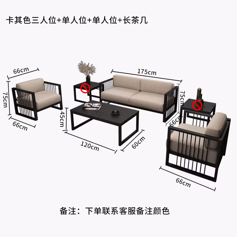 钱柜QG202401241商务家用沙发黑色钢架1+1+3+长茶几(套)