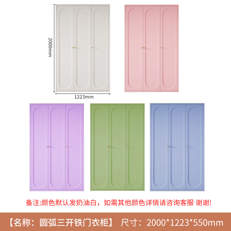 钱柜QG2024103010奶油风钢制衣柜加厚三门衣柜圆弧铁门2000*1223*550mm(台)