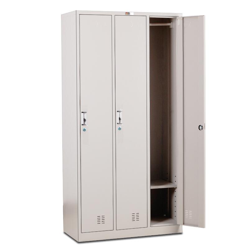 钱柜QG5352288储物柜家用存放柜铁皮柜灰白色三门员工更衣柜1800*900*420mm(台)