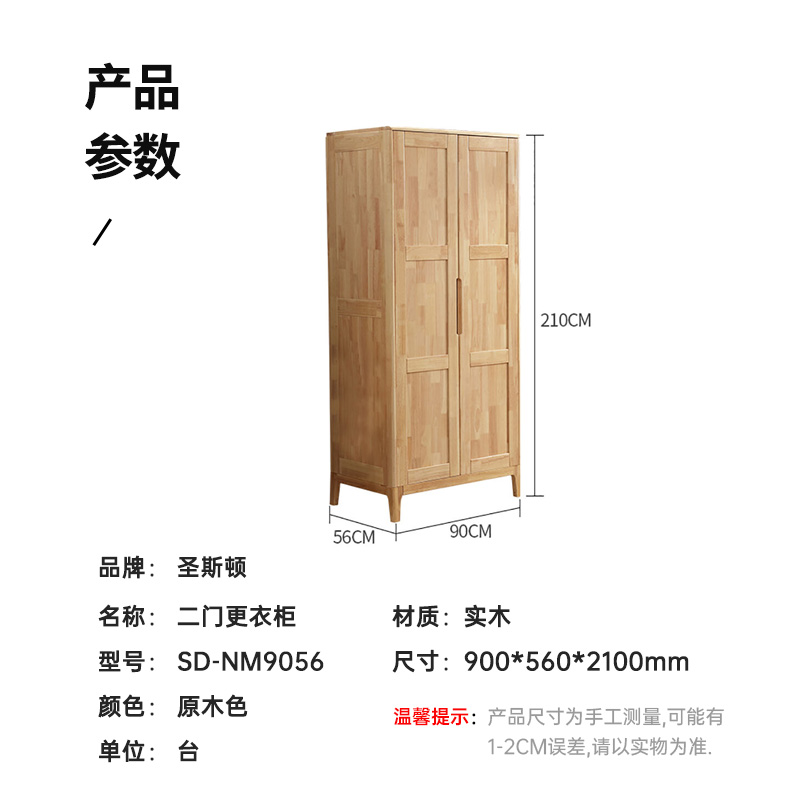 圣斯顿SD-NM9056实木二门更衣柜900*560*2100mm(单位:台)原木色