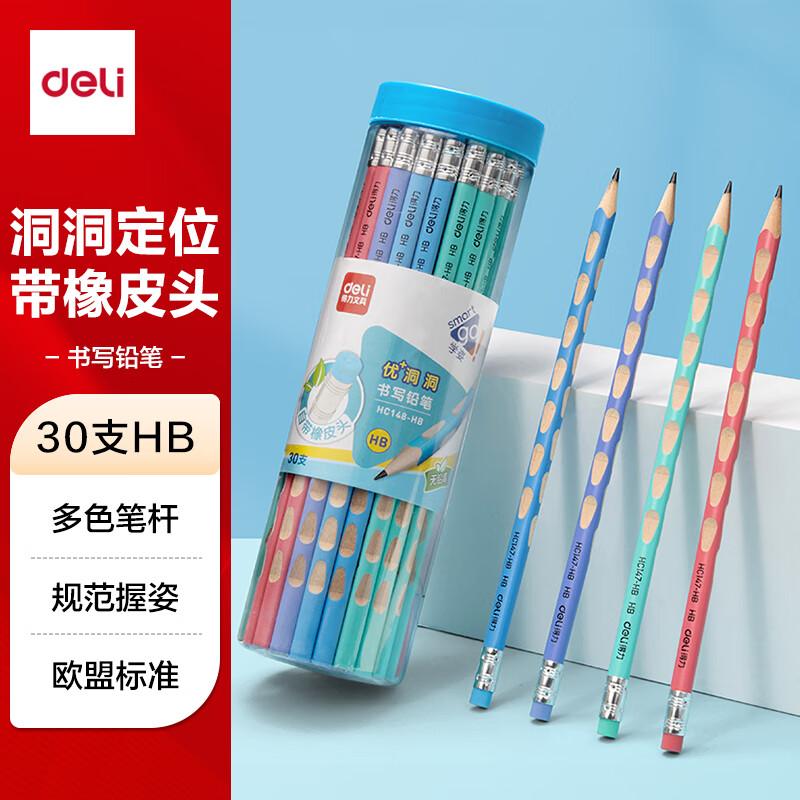 得力HC148-HB优+洞洞书写铅笔HB(混)(30支/筒)