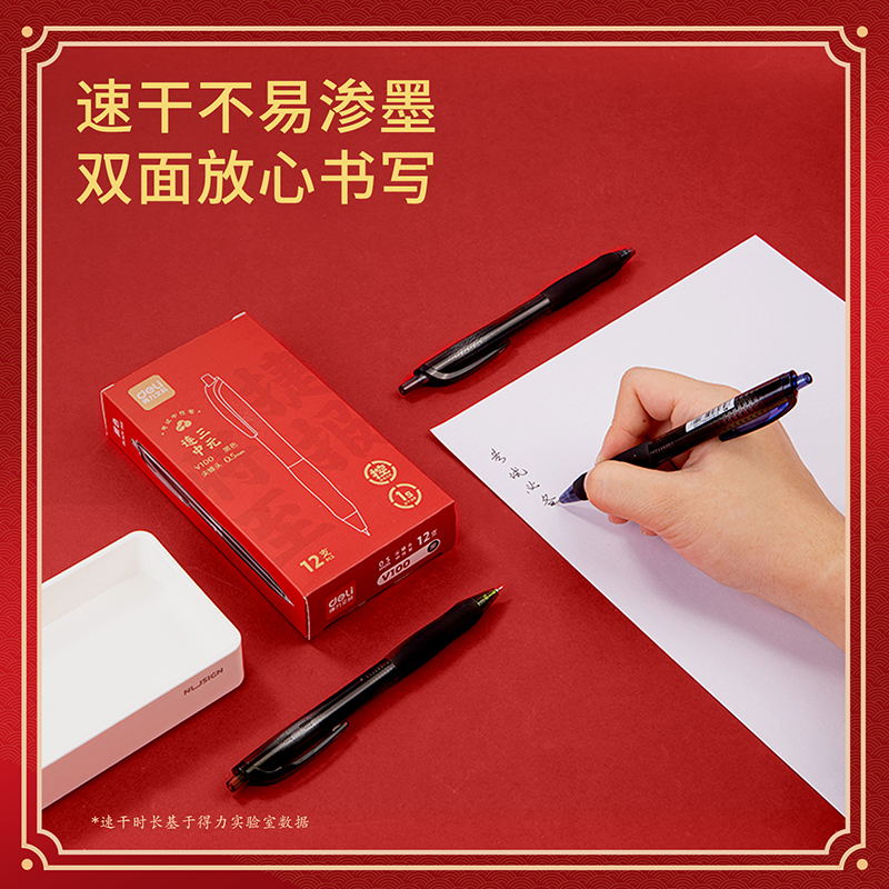 得力V100扩容速干考试中性笔0.5mm按动尖锥头(黑)(支)