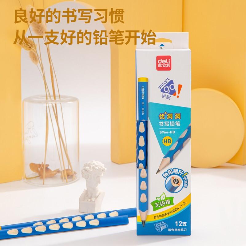 得力S966-HB_12支彩盒装HB特粗洞洞铅笔(混)(盒)(12支/盒)
