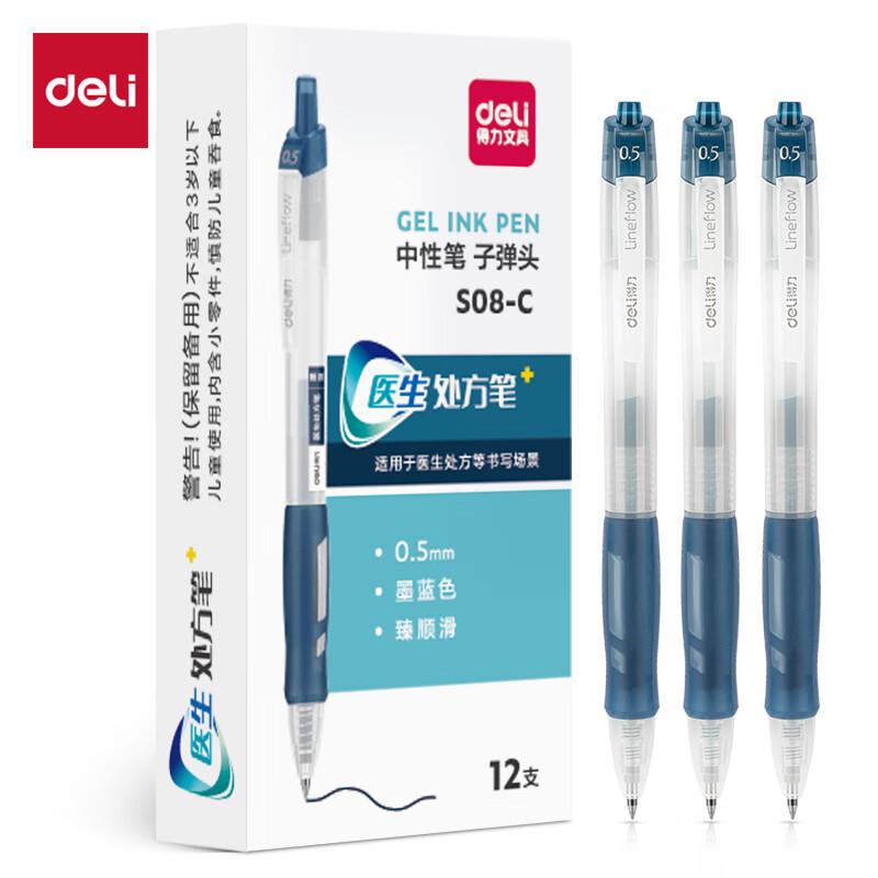 得力S08-C医生处方笔臻顺滑0.5mm弹簧头(墨蓝)(支)
