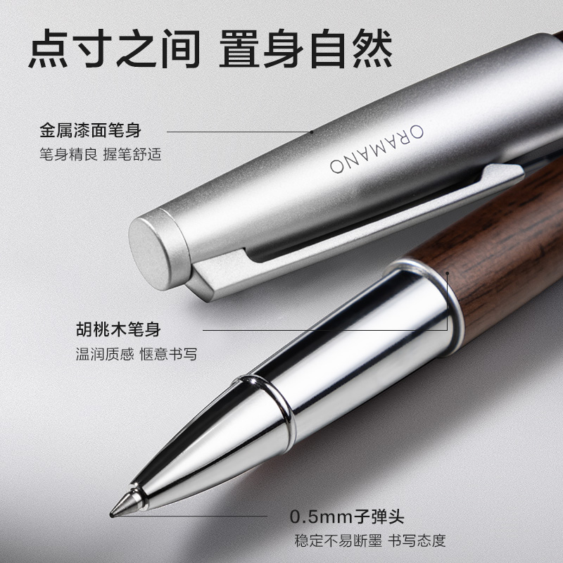 得力A6Pro-05臻顺滑木纹拔帽中性笔0.5mm子弹头(曜栗色)(1支/盒)