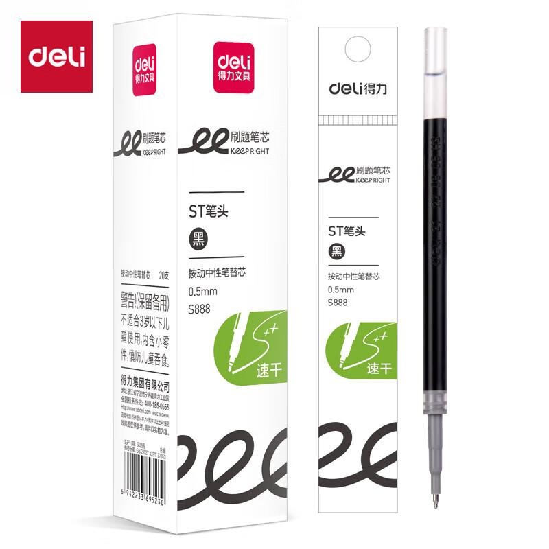 得力S888刷题速干按动笔芯0.5mmST头(黑)(支)