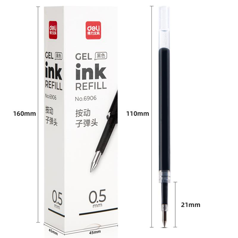 得力6906中性笔芯0.5mm弹簧头(黑)(单位:支)