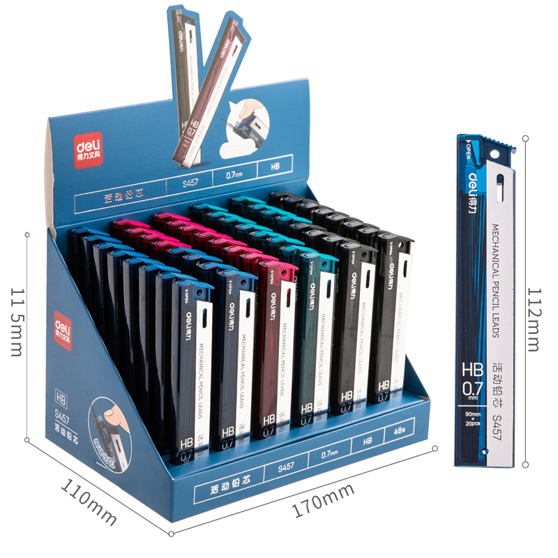 得力S457活动铅芯HB0.7-90MM(混)(支)