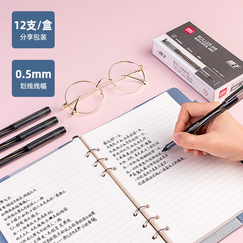 得力S851直液式走珠笔0.5mm全针管(黑)(12支/盒 单位:支)