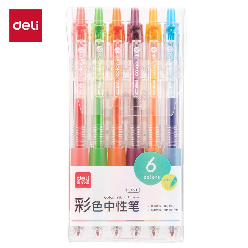 得力SA501按动彩色中性笔0.5mm子弹头(混)(6支/盒)
