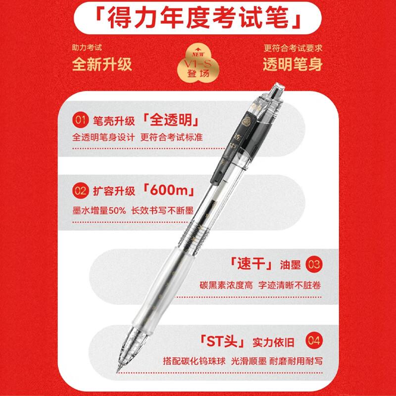 得力V1-S速干按动考试中性笔0.5mmST头(黑)(支)