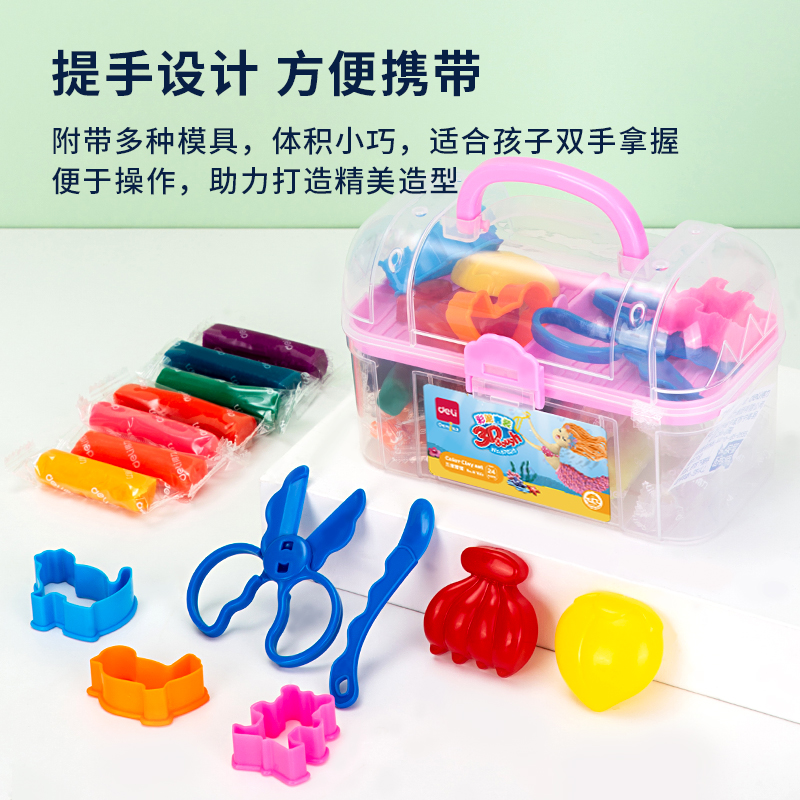 得力67825_24色宝箱彩泥(粉色)(桶)