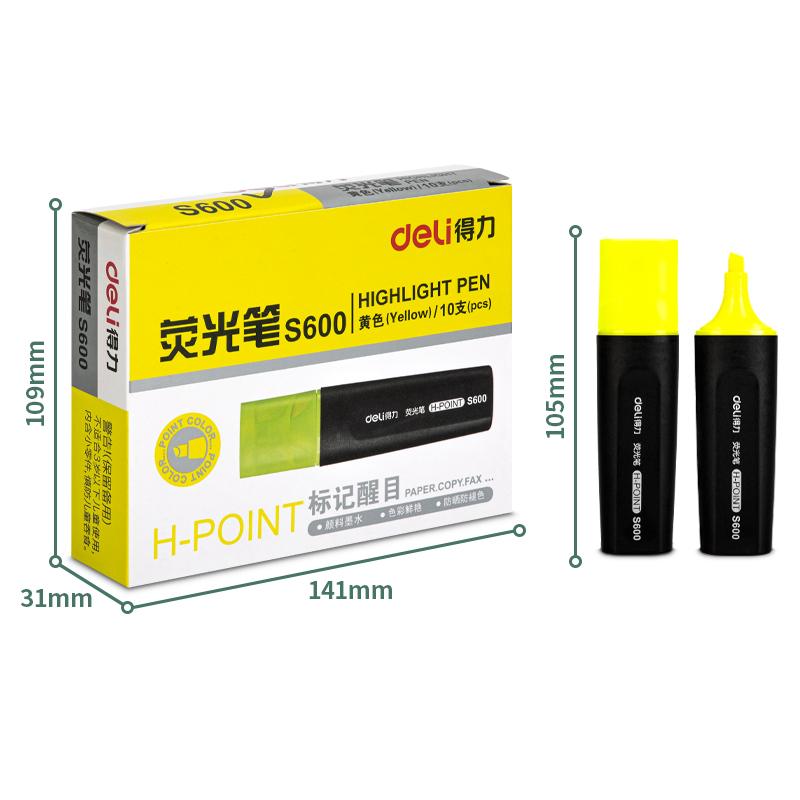 得力 S600 荧光笔 5.0mm 10支/盒(单位:支) 黄