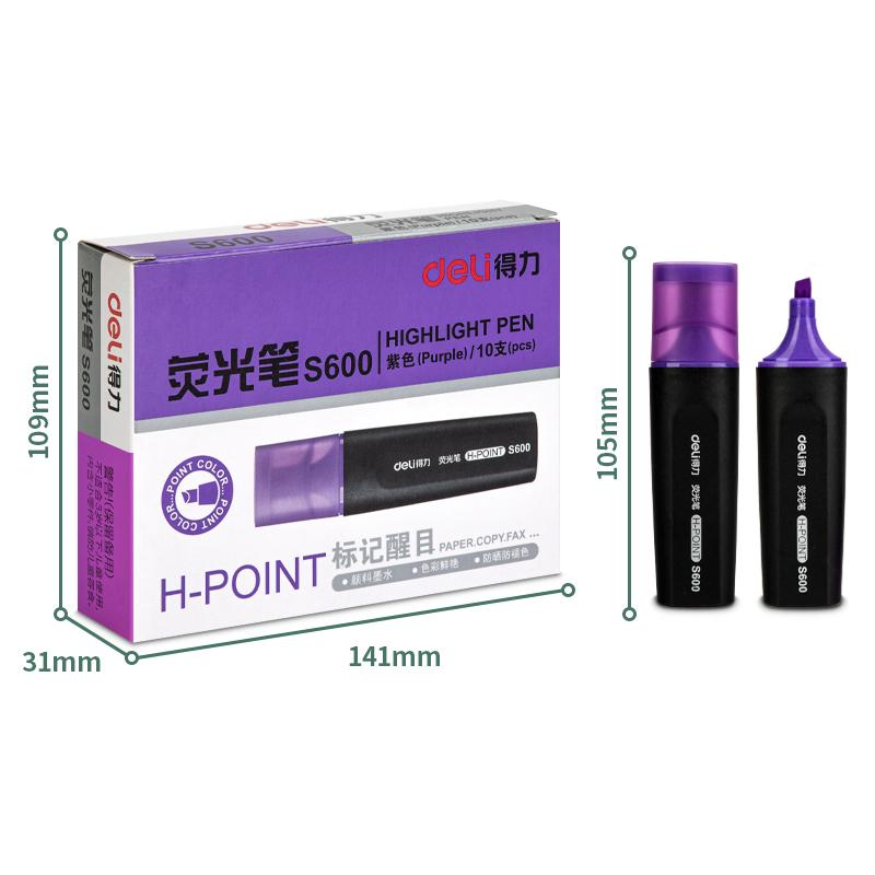 得力 S600 荧光笔 5.0mm 10支/盒(单位:支) 紫