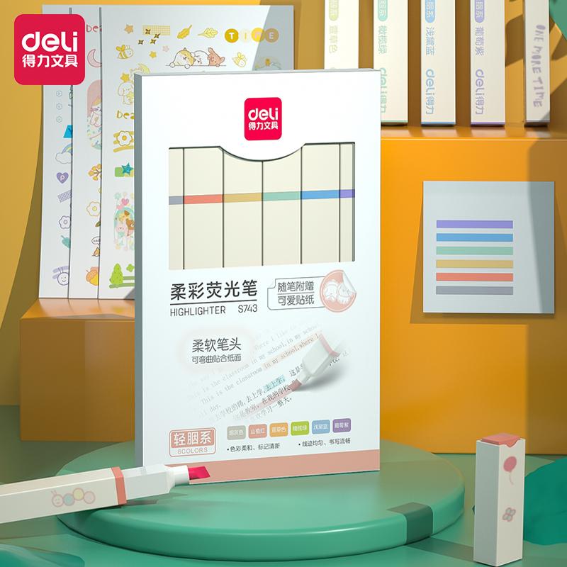 得力S743方杆荧光笔6支/盒(混)(单位:盒)6色