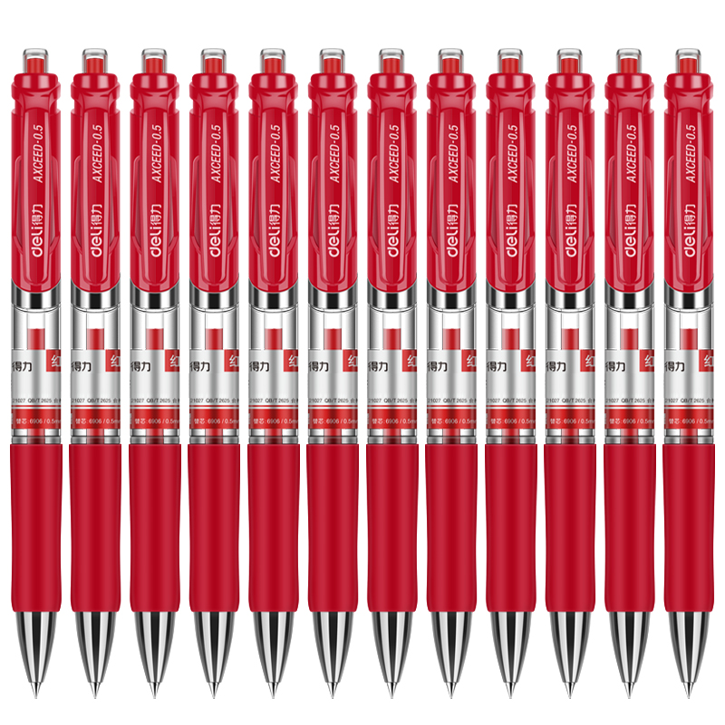 得力DP201按动中性笔0.5mm子弹头(红)(支)